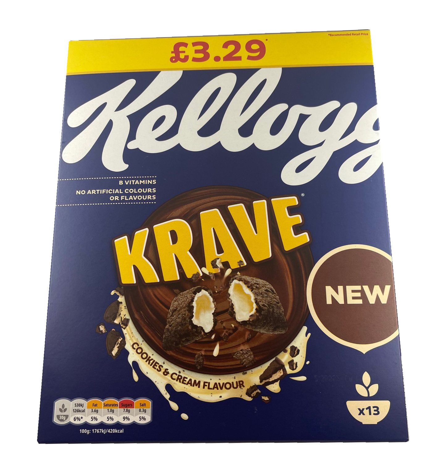Getreidemehle (54%) (Weizen, Vollkorn, Mais), Zucker, Pflanzenöle (Palm, Raps, Sonnenblumen), Maltodextrin, fettreduziertes Kakaopulver (3%), Calciumcarbonat, Vollmilchpulver (1,5%), Salz, Sahnepulver (Milch) (0,7%), Emulgator (Sojalecithin), natürliches Aroma, Riboflavin, Thiamin, Vitamin B6, Vitamin B12, Antioxidantien (Ascorbylpalmitat, Alpha-Tocopherol).