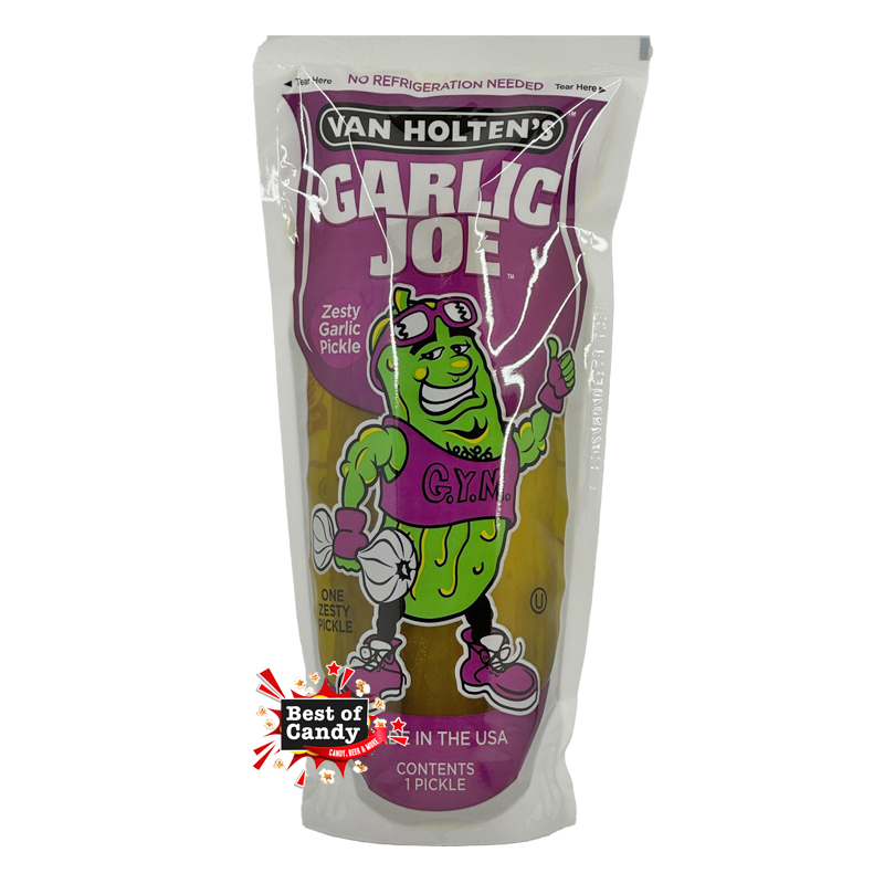 Gurke, Wasser, Salz, Essig, Stabilisator E509, Aroma, Konservierungsmittel (E211, E202), Knoblauchextrakt, Farbstoff E102*.