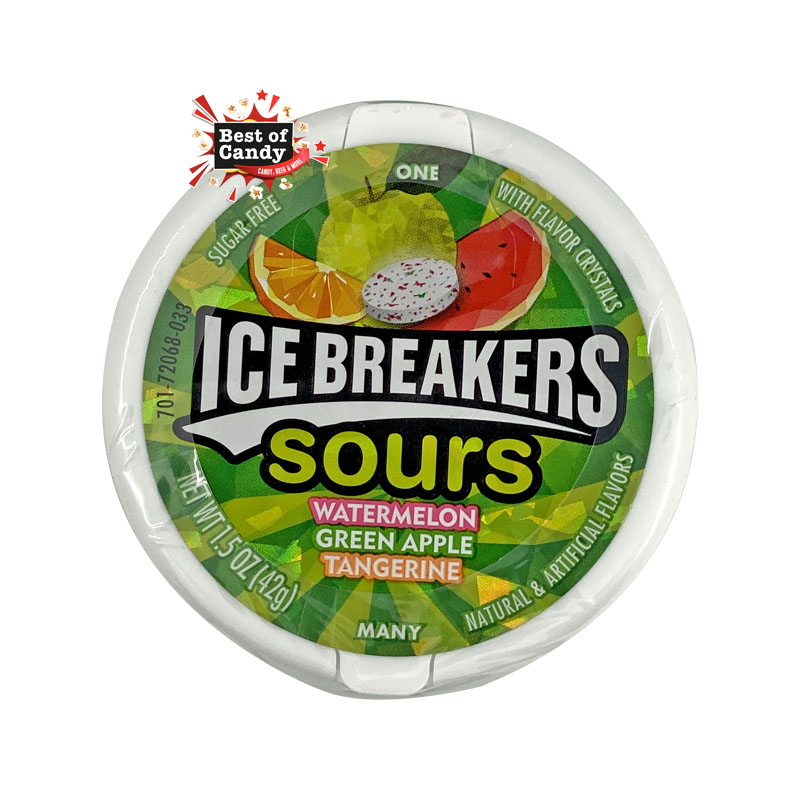 Zutaten: Süßstoffe (Sorbit, Maltitol, Aspartam), Säureregulatoren (Apfelsäure, Weinsäure, Zitronensäure), Maltodextrin, natürliche und künstliche Aromen, hydriertes Palmöl, Trennmittel (E470b), Emulgatoren (E414, SOJALECITHIN), Farbstoffe (E110, E102, E129, E133).