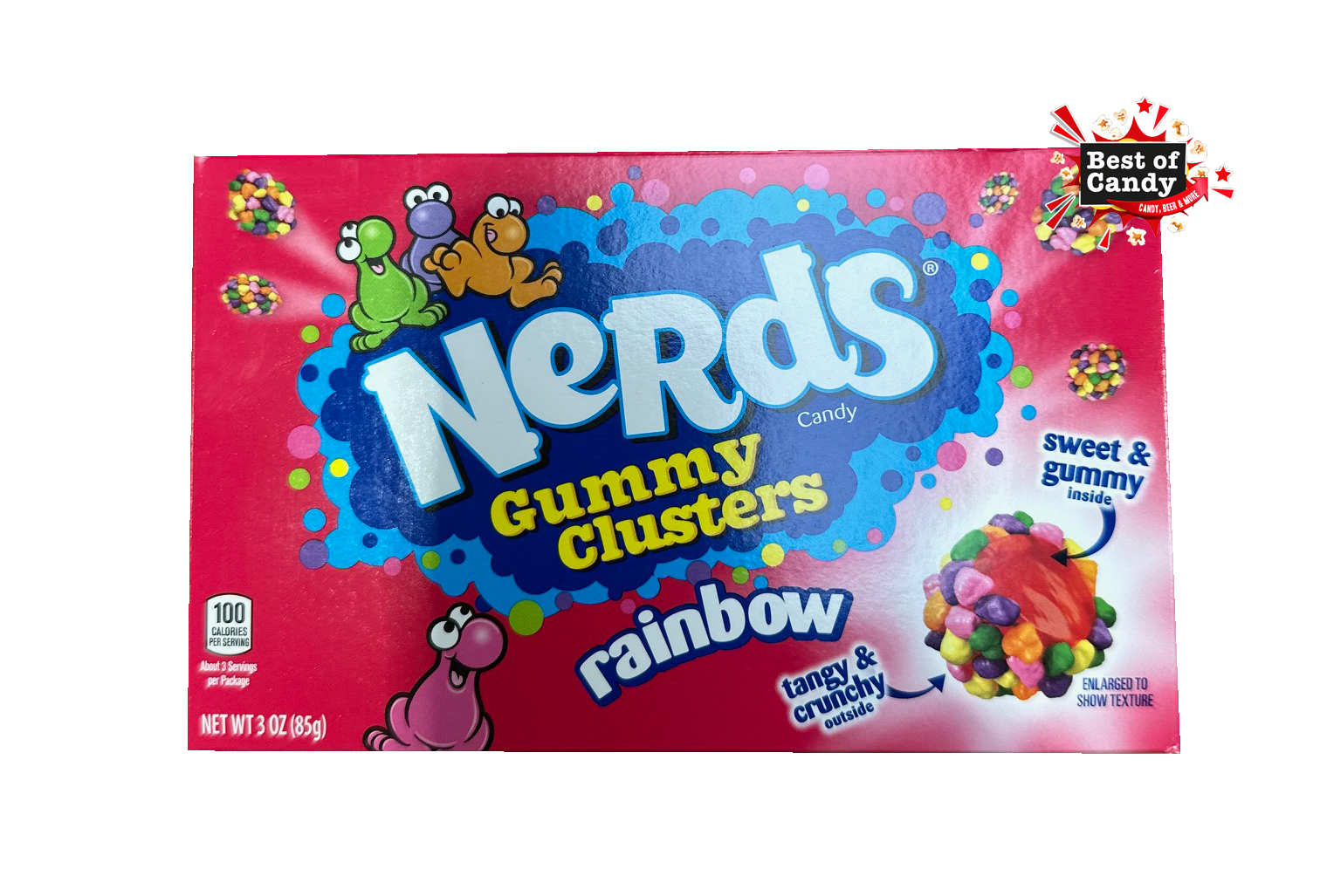 Dextrose, Zucker, Säureregulator E296, MAISSIRUP, künstliches Aroma, Glasiermittel E903, Farbe (E171, E133, E110*, E102*)